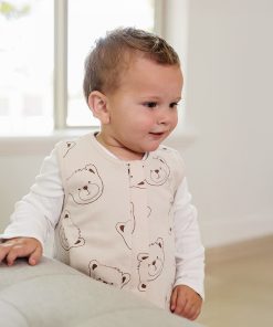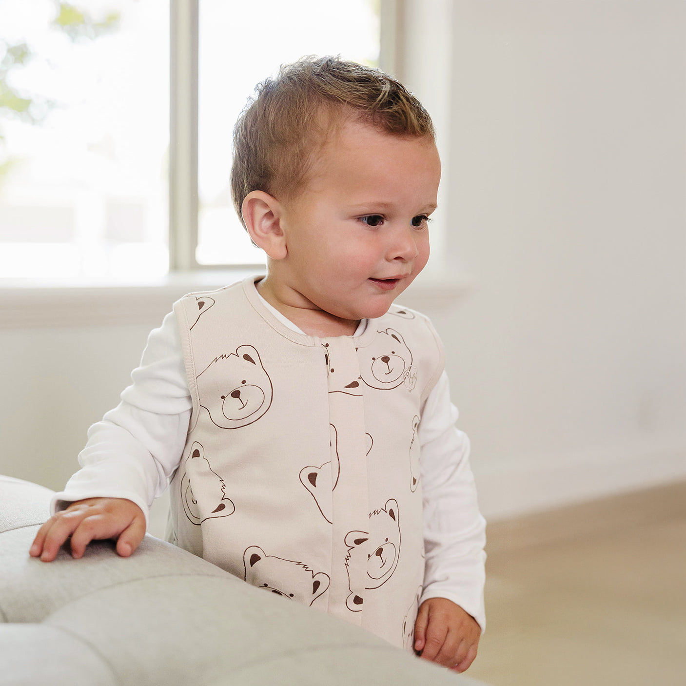 4 Season Baby Sleep Bag with Feet, Merino Wool & Organic Cotton, Teddy Bear