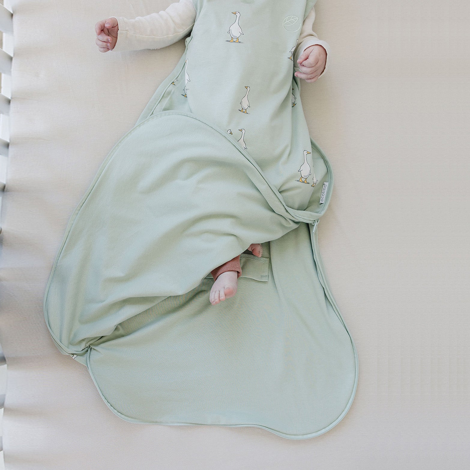This Adjustable Organic Cotton Baby Sleeping Bag is designed to give your little one safe and comfortable sleep every night. It has the same practicality as our award-winning Woolino 4-Season Ultimate Baby Sleep Bag, only it’s made with two layers of GOTS certified organic cotton fabric (no wool liner) – perfect for warmer climates.