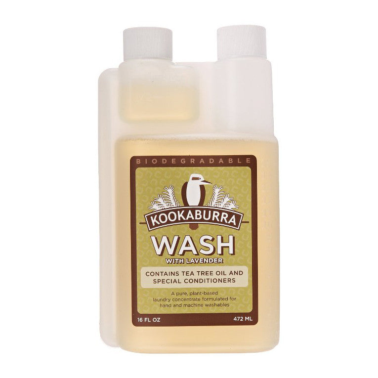 Kookaburra Wash cleans and softens all types of fibers. Wash combines the deodorizing power of tea tree oil with the conditioning, fiber enhancing qualities of lanolin, coconut and jojoba bean oils leaving your washables clean, fresh, and amazingly soft. Available in original floral, lavender, and no fragrance added. Our detergent free concentrate reduces fiber breakdown, limiting fading, extending the life of your washables.