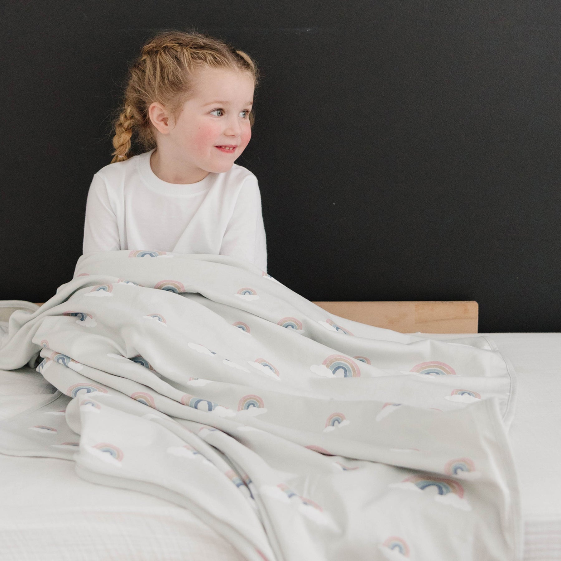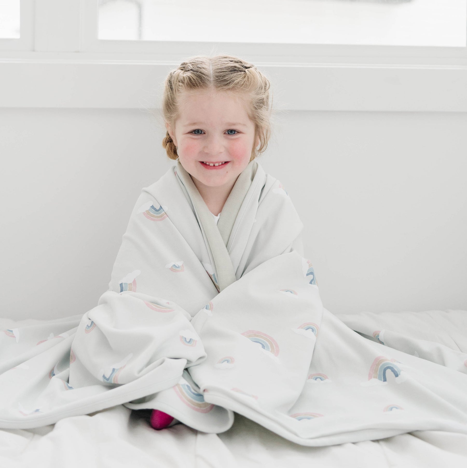 Toddler Blanket, 4 Season Merino Wool & Organic Cotton Blanket, 52.5 x 40, Rainbow